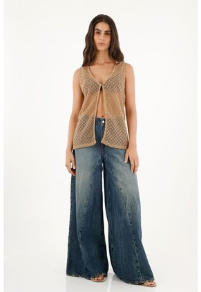 Chaleco Café Tejido Con Abertura Para Mujer