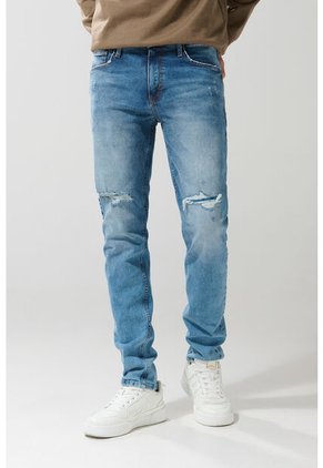 Tennis Jean Nudy Azul Tiro Medio Con Bigotes 3D Para Hombre