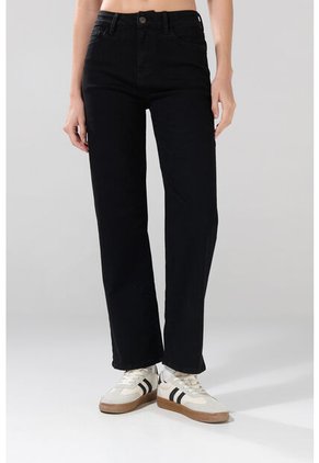 KOAJ Jean Straight Leg Bota Recta Negro Con Tiro Alto