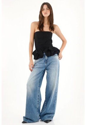 Tennis Camisa Strapless Con Corte Abombachado Negra Para Mujer