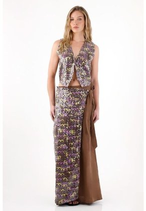 Tennis Chaleco Con Lentejuelas Café Para Mujer
