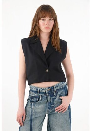 Tennis Chaleco Con Solapa Negro Para Mujer